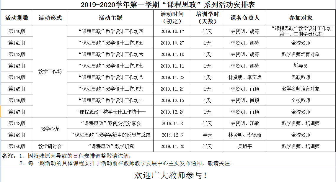 教师教学发展系列活动(第140-150期)——“课程思政”系列活动