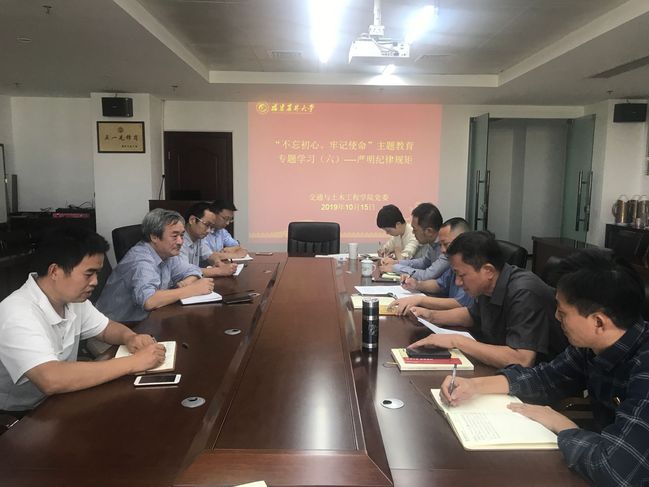 10月15日,交通与土木工程学院党委在旗综合楼501室开展“不忘初心、牢记使命”主题教育第六专题集中学习研讨。校巡回指导一组组长谢拥群,成员林惠科、王德海和杨丛霖莅会指导,会议由学院党委书记洪诚主持,理论中心组成员参加学习。