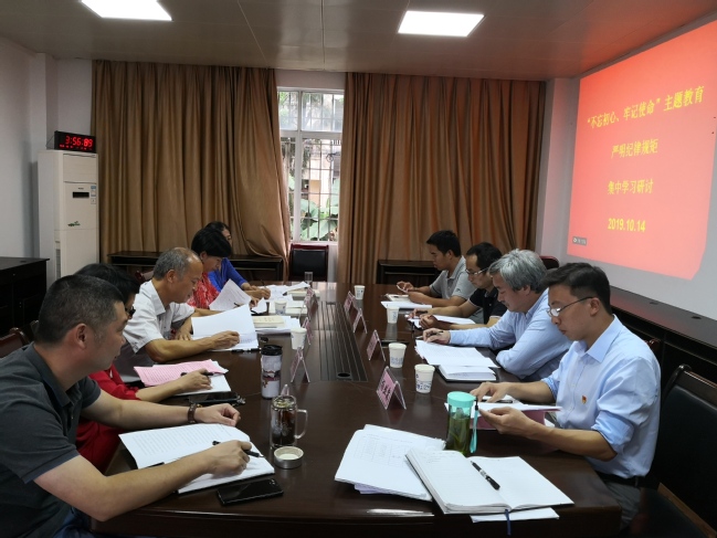 10月14日,继续教育学院党委在416党员活动室召开“不忘初心、牢记使命”主题教育第六专题 “严明纪律规矩”学习交流研讨。校巡回指导一组组长谢拥群,成员林惠科、王德海和杨丛霖莅会指导,学院党委理论中心组成员参加,党委书记范焕谦主持会议。