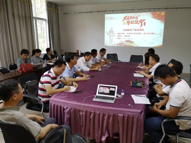 座谈会上,曾任森说明了此次调研的目的和希望交流的几方面问题。他指出,党的十九大提出一项重大战略“乡村振兴战略”,党中央在新中国成立第70个年头提出“不忘初心、牢记使命”主题教育,如何将“不忘初心、牢记使命”主题教育与实施乡村振兴战略相结合,可结合自身工作与感悟,谈谈想法。