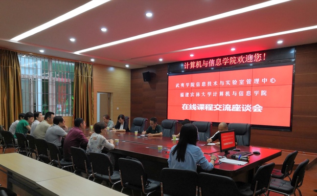 10月14日下午,武夷学院信息技术与实验室中心副主任陈荣旺一行到计算机与信息学院,在宝铃楼103教室举行了在线课程交流座谈会,院长助理刘必雄参加座谈,国家级精品在线开放课程负责人陈琼及其课程团队、计算机基础教研室相关教师等参加了会议。