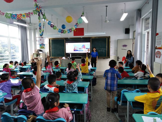 10月17日下午,计算机与信息学院绿伞志愿服务队前往洪塘中心小学,向该校三年级学生开展了以“学习传承红色精神,赓续发扬祖国风采”为主题班会的志愿服务活动。