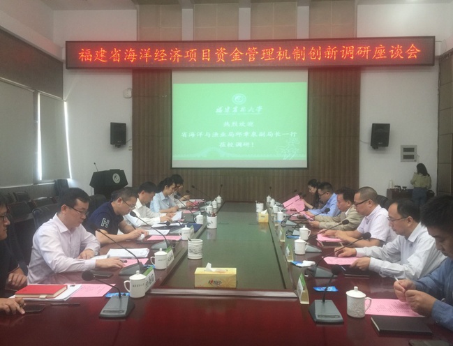 10月22日上午,省海洋与渔业局副局长邱章泉一行来我校调研海洋经济项目资金管理机制创新工作,副校长郑宝东出席座谈会。