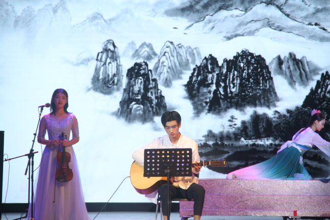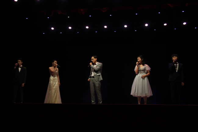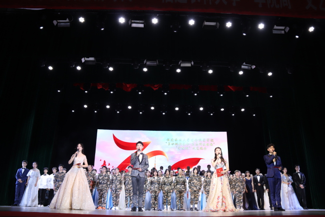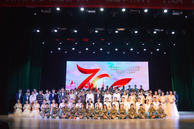 文艺汇演分为礼赞新中国、传承新文化、交流促开放、致敬追梦人四个篇章,由歌曲《歌唱祖国》拉开序幕,师生代表以雄浑有力的合唱表达了对祖国的赞美与热爱。朗诵《我的祖国》、歌唱《龙的传人》和《中国人》将生科学子对祖国的浓浓深情直抒胸臆。