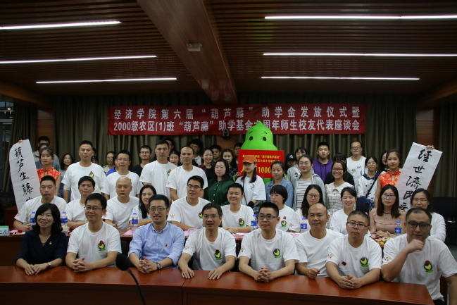 10月26日下午,经济学院第六届“葫芦藤”助学金发放仪式暨2000级农村区域发展专业(1)班“葫芦藤”助学金六周年师生校友代表座谈会在经管楼314教室举行。2000级农村区域发展专业(1)班24位校友及他们在校学习期间的学院领导、班主任、辅导员,经济学院党委书记林栋、院党委副书记陈玲凤出席活动。