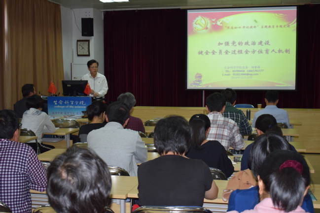 10月29日下午,生命科学学院党委书记林豪森以《加强党的政治建设健全全员全过程全方位育人机制》为主题,为学院教职工上了一堂“不忘初心、牢记使命”主题教育专题党课。学院百余名教职工参加党课。