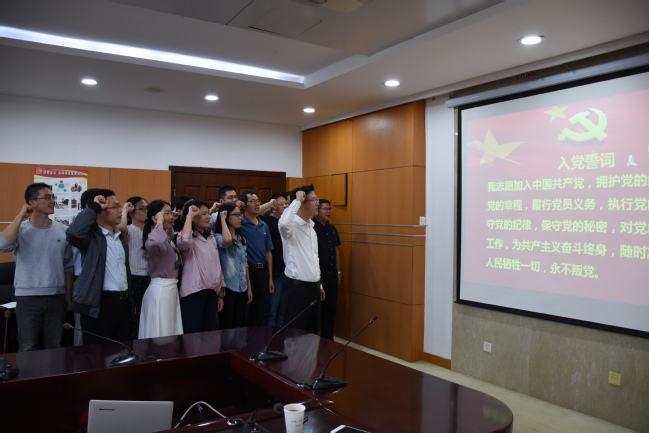 全体党员在江潮炳的领誓下,庄严地举起右手,朗声重温入党誓词。大家纷纷表示将按照“不忘初心、牢记使命”主题教育总要求,“守初心、担使命,找差距、抓落实”,以立德树人为根本、以强农兴农为己任,为学校建设“双一流”高水平大学贡献自己更大的力量。