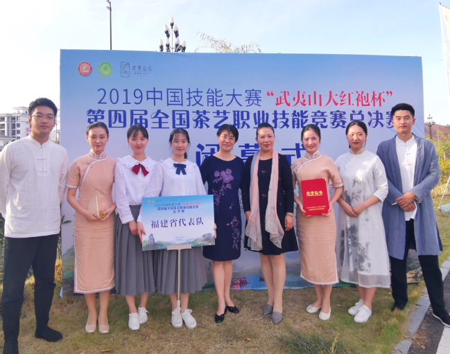 10月28-31日,由中国茶叶学会、中国就业培训技术指导中心、农业农村部人力资源开发中心、中华全国供销合作总社职业技能鉴定指导中心联合主办的2019年中国技能大赛——“武夷山大红袍杯”第四届全国茶艺职业技能竞赛总决赛在福建省武夷山市举行。我校茶艺队2017级茶学创新班毛贻帆、晏美红、肖婧仪、吴宗杰、吴晴阳,2018级严家显茶学班张飞扬、迟润青等7位同学代表福建省参加团体赛决赛,表演的《多彩闽茶,丝路传奇》作品获大赛铜奖。