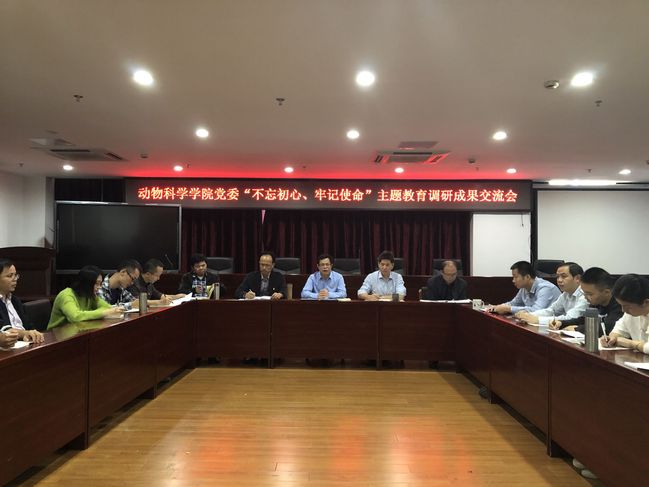 11月1日,动物科学学院党委在学院会议室召开“不忘初心、牢记使命”主题教育调研成果交流会。学院党员领导干部、党委委员、民主党派和无党派代表、各党支部书记、全体辅导员、部分系主任和科级干部以及学生党员代表参加会议。会议由院党委副书记(主持工作)黄毅军主持。
