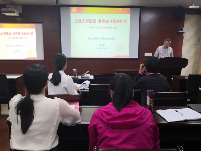 院党委书记范焕谦围绕主题“牢记高校初心使命,奋力续写新时代继续教育新篇章”讲党课;院党委副书记林素文结合纪检委员工作,围绕主题“把守纪律讲规矩摆在更加重要的位置”讲党课;副院长许丽英围绕“做‘不忘初心 牢记使命’的共产党人”主题讲党课;副院长林志鹏以“加强支部建设,发挥战斗堡垒作用”为题开展主讲。本次党课突出针对性,各位主讲人结合自身学习和专题调研,重点讲学习习近平新时代中国特色社会主义思想、习近平总书记关于教育的重要论述的认识体会,讲农林高校初心使命的领悟,结合联系学院工作讲差距和不足,分析原因,提出改进和加强意见、指导实践推动工作的对策举措。