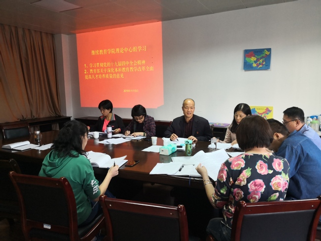 11月5日下午,继续教育学院党委理论学习中心组专题学习党的十九届四中全会精神及《教育部关于深化本科教育教学改革全面提高人才培养质量的意见》(以下简称《意见》)精神。院党委书记范焕谦主持学习会。范焕谦、李秀慧分别做了导读,与会人员作交流体会。