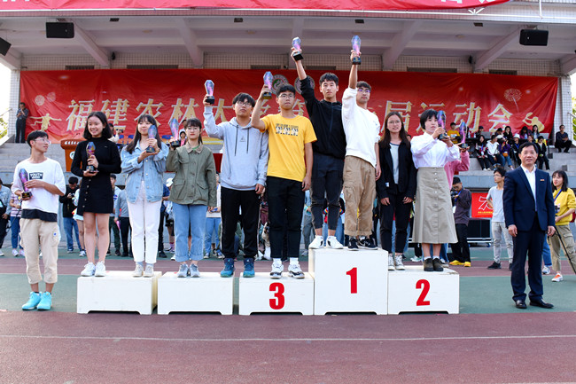 闭幕式上,裁判长、大会组委员副主任宣布运动会比赛成绩、教务处处长吴祖建宣读优秀裁判员和精神文明运动员名单、校工会常务副主席王育敏宣读运动会优秀组织奖单位名单,并为获奖的运动员代表队和单位颁奖。