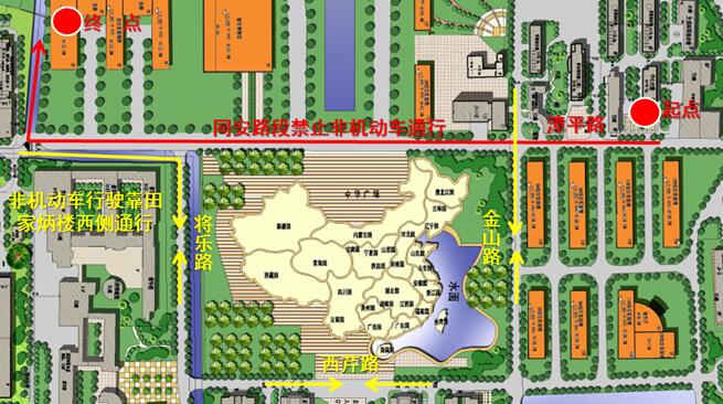 2、非机动车请绕道(避开同安路、漳平路)通行,按照图中黄色引导路线