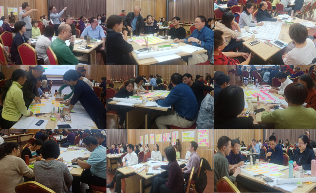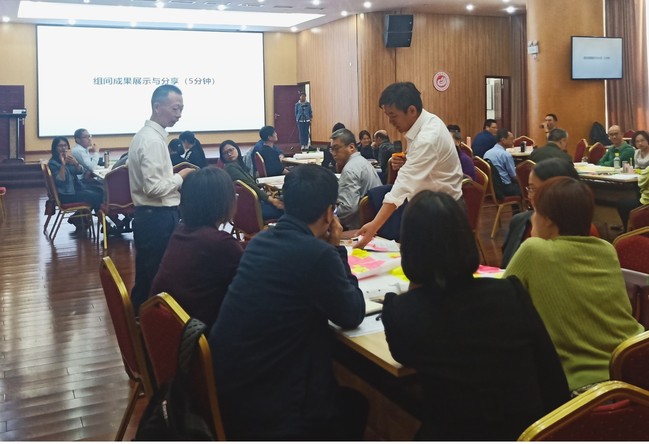参加活动的50多位教师被随机分为8个小组,活动中的互动环节以课堂互动形式展开,新颖的课堂思政设计在各小组的热烈讨论下产生,现场气氛热火朝天。