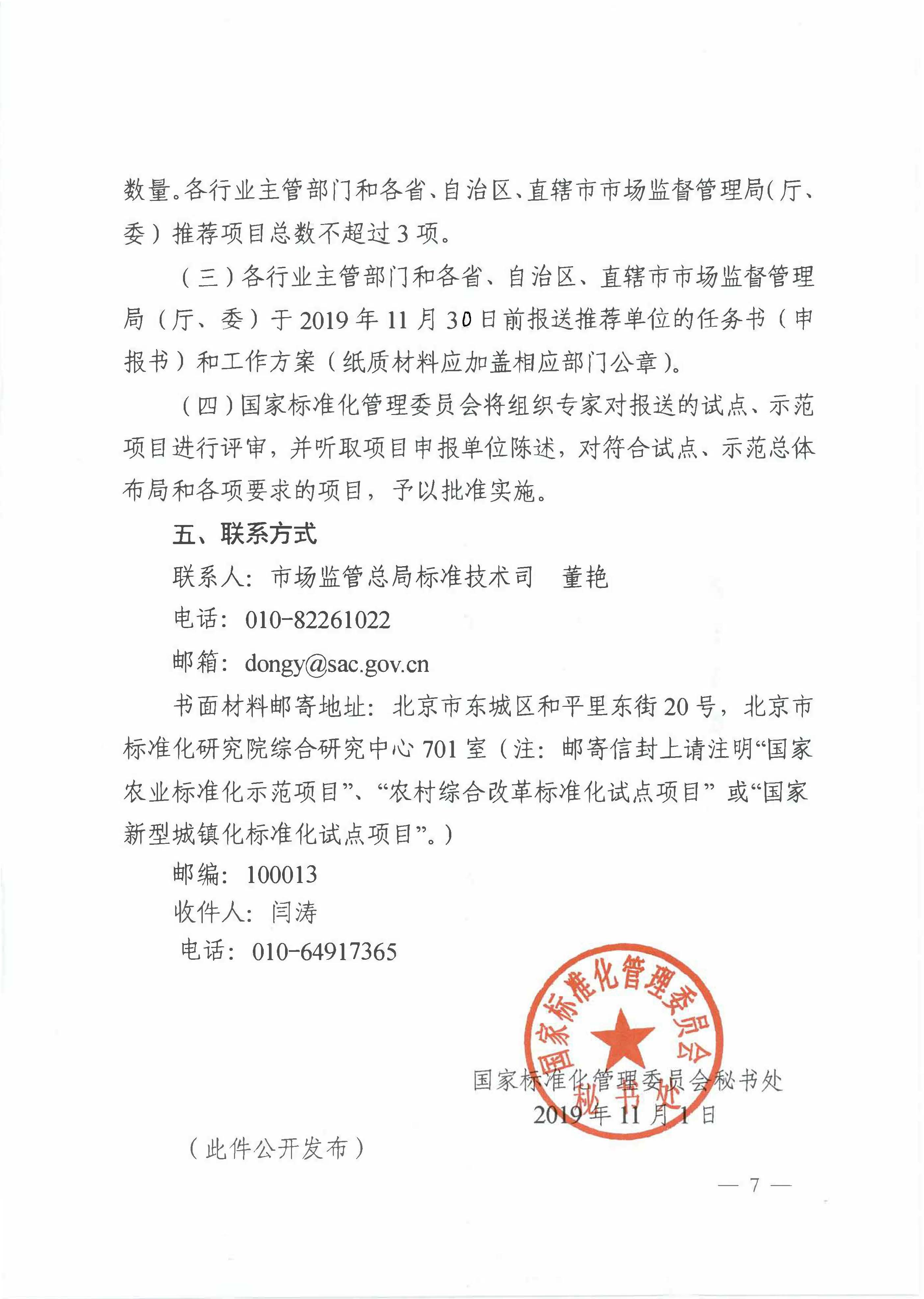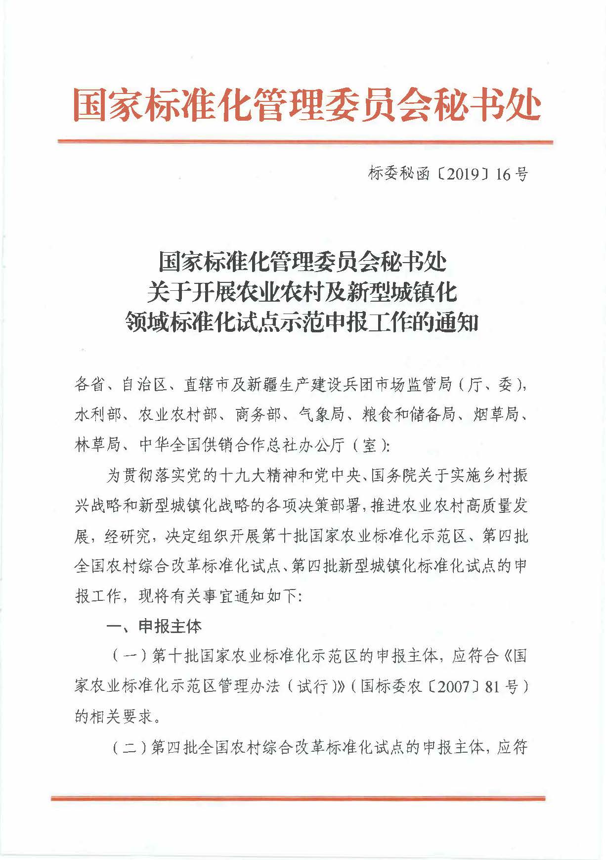 接省农业农村厅转来的《国家标准化管理委员会秘书处关于开展农业农村及新型城镇化领域标准化试点示范申报工作的通知》(标委秘函【2019】16号)文件,农业农村及新型城镇化领域标准化试点示范申报工作已开始,请各学院、各有关单位组织申报,具体文件查看http://www.sac.gov.cn/sbgs/sytz/201911/t20191107_343862.htm。请于11月13日前报送相关材料至校科研院。联系人:李文、蔡丽娟,联系电话:83789230。