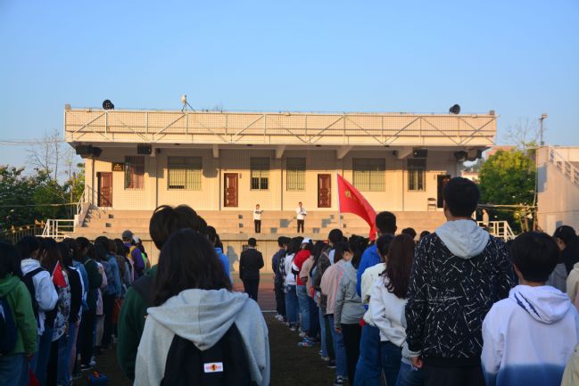 在庄严的国歌声中,五星红旗冉冉升起,全体人员高声齐唱国歌,表达对祖国的热爱之情。2018级严家显班赵珂和2019级严家显班杨佳乐作为学生代表发言,发表了国旗下的讲话,诉说了对祖国深深的热爱,立志要用自己的力量为祖国作出贡献。