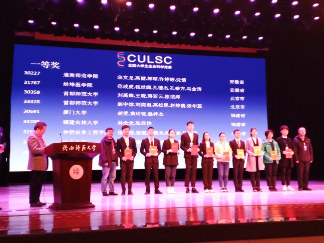11月10日,由教育部高等学校大学生物学课程教学指导委员会、教育部高校生物科学类专业教学指导委员会、教育部高校生物技术与生物工程类专业教学指导委员会和《高校生物学教学研究(电子版)》杂志联合举办的第三届全国大学生生命科学竞赛决赛在陕西师范大学圆满落幕。本次共吸引了复旦大学、武汉大学、南开大学等全国411所高校、4797个参赛项目参加。经激烈角逐,共有156项参赛项目进入国家决赛,最终产生60项大赛一等奖,96项大赛二等奖。我校生命科学学院2016级生物技术专业本科生林念念、张欣怡(指导老师:王宇)荣获大赛一等奖。此外,生命科学学院2017级生物学基地班张桐栋、杜焙炎、佘文艺、杨标、束海永同学(指导老师:陈观水,刘永梅)荣获大赛三等奖。