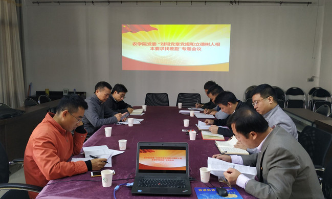 11月15日上午,农学院党委根据学校“不忘初心、牢记使命”主题教育工作部署的要求,在三楼会议室召开对照党章党规和立德树人根本要求找差距专题会议。院党委书记童庆满主持会议,学院领导班子成员出席会议,校第二督导组张明辉、陈伟到会指导。