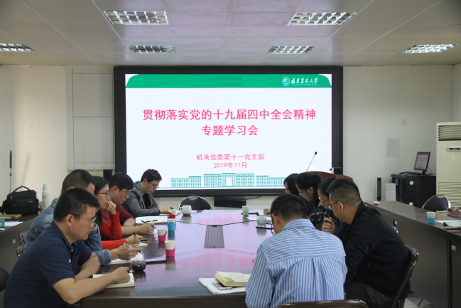 11月12日下午,机关党委第十一党支部组织党员集中学习贯彻党的十九届四中全会精神。