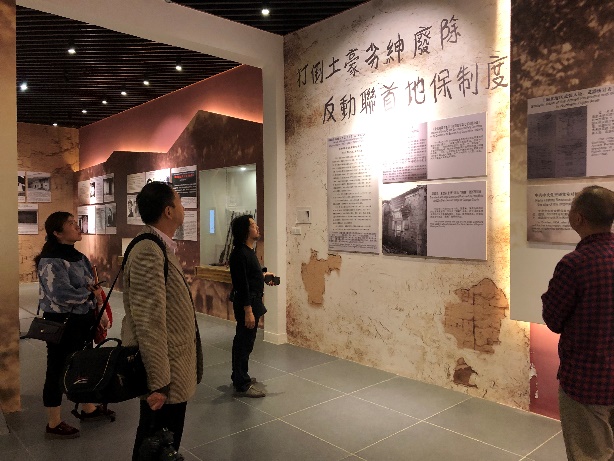6日下午,调研团队前往闽北革命历史纪念馆进行公立博物馆的专题调研。闽北革命历史纪念馆,位于武夷山市区列宁公园内,与闽北革命烈士纪念碑、六烈士亭和粟裕大将骨灰安放处组成一组红色遗址遗迹群,与赤石暴动遗址群、大安的闽北苏维埃政府所在地红色遗址群所包含的四处红色文化资源构成了丰富又各具特色的红色文化展示链条,以此为考察点有助于提纲挈领、以点带面地掌握整个闽北红色资源开发利用的普遍情况。团队与纪念馆工作人员就博物馆的布展、文物收集、科研与教育工作的承担,以及红色文化资源开发利用手段的创新、红色文物和遗址遗迹的保护与活化等内容进行专题调研。