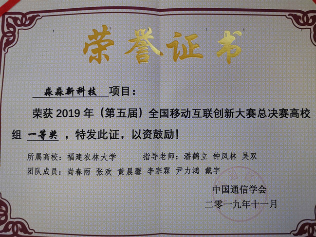 11月15-17日,由中国通信学会主办的第五届全国移动互联创新大赛总决赛在北京举行。经激烈角逐,我校园艺学院的《淼淼新科技》创新创业项目获得高校组一等奖和最具市场潜力奖(指导老师:潘鹤立等;项目成员:尚春雨、张欢、黄晨馨等),《磁芯—磁悬浮智慧园艺景观》创新创业项目获得高校组三等奖(指导老师:钟凤林等;项目成员:王姝萱、王晋伟、游挺、阮育慧、阮彦凯)。