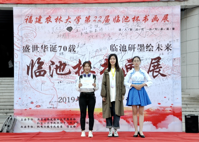本次书画展的主题是“盛世华诞七十载,临池研墨绘未来”,围绕书法展、绘画展、摄影展、现场绘画大赛、“我和我的祖国”摄影展及“庆祝新中国七十周年”绘画展六个项目展开。活动期间,来自我校各个学院的书画爱好者或挥毫泼墨,或驻足欣赏,或成群品评,积极地参与其中。许多同学参与到现场的各种小游戏中,赢取众多小奖品,现场气氛热烈异常。通过激烈比拼,国际学院的靳丹阳同学斩获绘画作品一等奖;艺术园林学院的汪政龙同学获得摄影作品一等奖;植物保护学院的谢翔同学赢取书法作品一等奖;校宣传部获得现场绘画大赛一等奖。机电工程学院团委宣传部囊括最佳组织奖和最佳创意奖。
