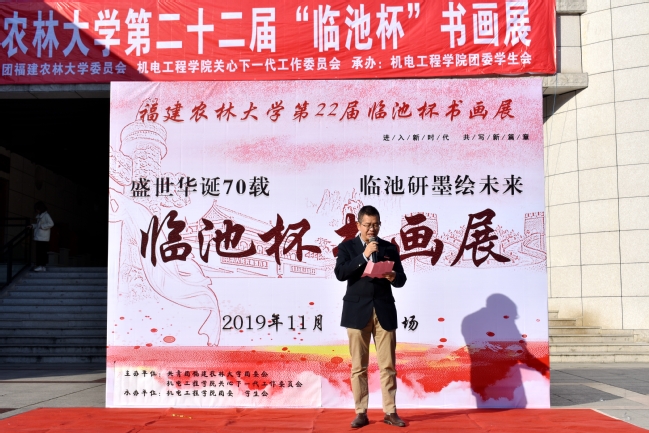 开幕式上,机电工程学院副院长陈学永致辞,他对广大师生的到来表示热烈欢迎,他表示,恰逢新中国成立七十周年,希望通过这样的活动,让大家能够亲近书画,继承与弘扬中华优秀传统文化。