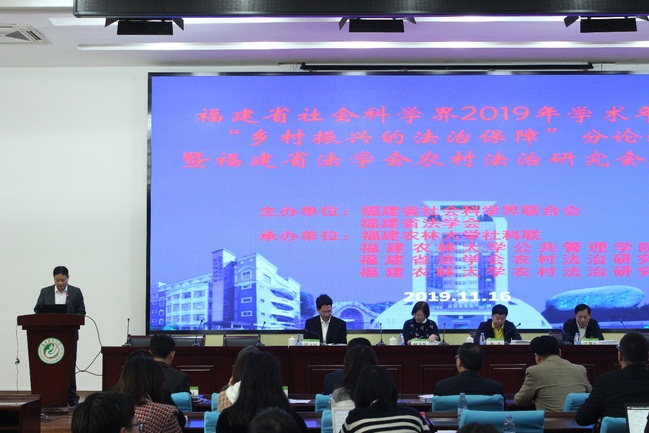11月16日,福建省社会科学界2019年学术年会“乡村振兴的法治保障”分论坛暨福建省法学会农村法治研究会2019年年会在我校禧强楼学术报告厅召开。本次论坛由福建省社会科学界联合会、福建省法学会主办,我校社科联、公共管理学院、福建省法学会农村法治研究会、我校农村法治研究中心承办。来自中央编译局、厦门大学、福州大学、我校、福建省人民检察院、厦门市同安人民法院、福州市鼓楼区人民法院等党政机关、高校、司法实务部门的专家学者和我校全体法律硕士研究生共120多人参会。