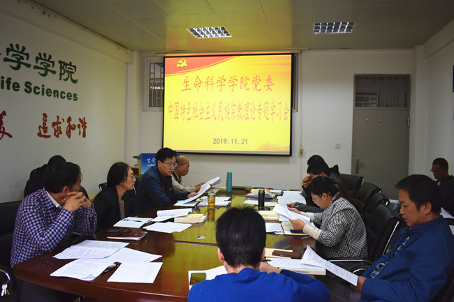 11月21日上午,生命科学学院党委在生科楼404室召开理论中心组扩大学习会,专题学习中国特色社会主义民族宗教理论,会议由学院党委书记林豪森主持。