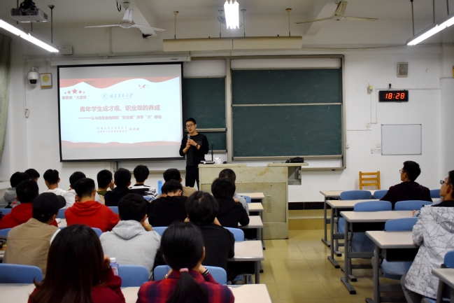 林黄敏老师结合自身学习新思想、学习领悟习近平总书记的工作经历,从“立鸿鹄志:扣好人生的第一颗扣子”、“全面发展:求真学问,练真本领”、“职业选择:好儿女志在四方,有志者奋斗无悔”三个方面进行了深入浅出的讲解,通俗易懂,他指出作为当代新青年,应当树立正确的职业观和择业观,坚定信念跟党走,志存高远、有梦敢追,求真学问,学真本领;能吃苦,敢担当,牢固树立创新精神,不断增强创新意识,坚持学以致用、以用促学;要把自己的职业理想投入到祖国建设的洪流,让青春年华在为国家、为人民的奉献中焕发出绚丽光彩。