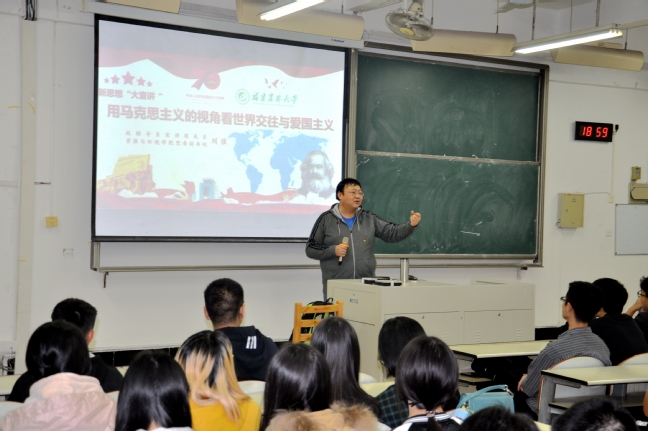 11月22日晚,机电工程学院在禧强楼105教室举办本学期第五场辅导员理论宣讲团专题讲座,校宣讲团成员刘强老师作了主题为《用马克思主义的视角看世界交往与爱国主义》的专题宣讲,2019级电气工程及其自动化专业117位同学参加宣讲。