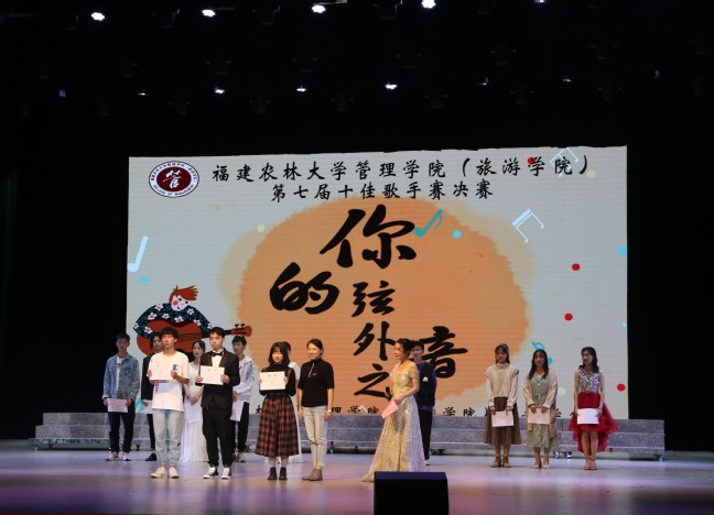 11月17日晚,管理学院(旅游学院)第七届十佳歌手大赛——你的弦外之音决赛于大学生活动中心举行。院党委副书记王小榕到场观看比赛,福州市群众艺术馆助理群众文化馆员、省合唱协会常务理事张涛,辅导员蔡湄湄,校十佳歌手冠军尤昌明,校十佳歌手亚军周杰,第六届管理学院十佳歌手冠军扎西吉村出席担任本次比赛评委。