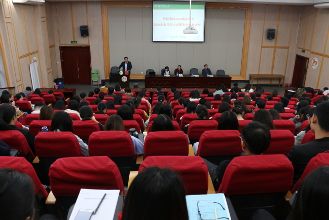 11月28日下午,经济学院在常盛报告厅举办2020届毕业生就业动员大会暨安全教育大会,院党委书记林栋、院长王林萍、院党委副书记陈玲凤、副院长黄和亮、中国海峡人才市场人事专员张阳阳、2020届全体毕业生出席本次大会。会议由陈玲凤主持。