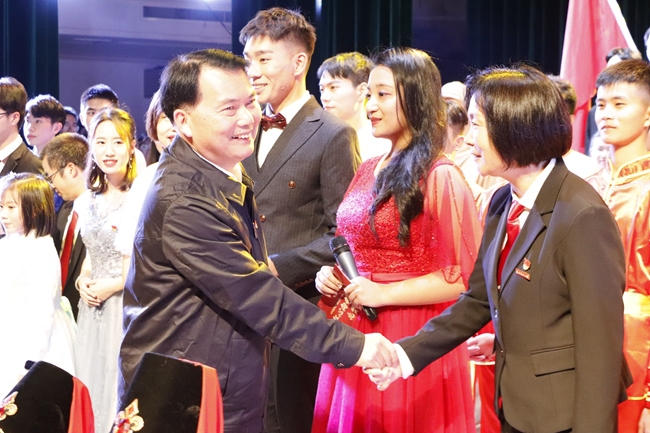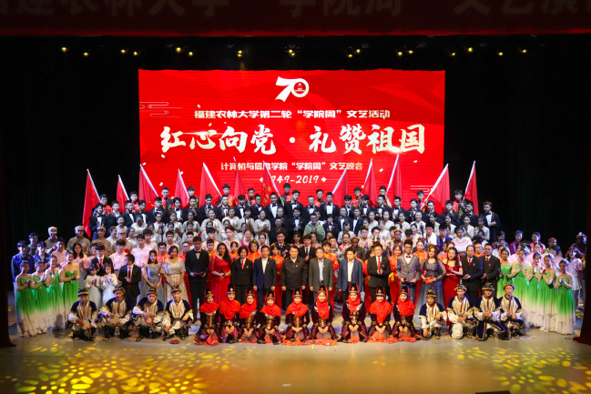 11月30日晚,计算机与信息学院在学校礼堂举办首场“红心向党 礼赞祖国”“学院周”文艺晚会,标志着我校第二轮“学院周”文艺活动正式拉开帷幕。晚会分“泱泱大国 盛世凯歌”、“风雨同舟 砥砺前行”、“礼赞祖国 筑梦明天”三个篇章,以文艺作品创作和演出的形式,唱响贯彻新思想、礼赞新中国、奋进新时代的爱国主义昂扬主旋律。校领导严金静、庄祥生、曾华平、郑郁善出席,各学院各机关部门负责人以及广大师生一同观看了演出。此次晚会开通网络直播,在校本部第一田径场、旗山校区、安溪校区同步播放。