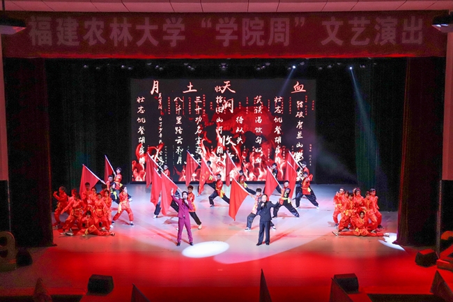 晚会在气势磅礴的器乐表演《盛世国乐》中拉开序幕。大气豪迈的武术表演《精忠报国》、精美绝伦的古典舞《茉莉花开》、独具民族特色的刀郎舞《胡杨魂》、唯美动人的现代舞《一路前行》、激情四射非洲传统舞蹈《Ingoma Yesintu》等精彩节目轮番上演,让现场高潮迭起、掌声此起彼伏。学院党支部书记小组演唱《永远跟党走》、情景朗诵《榜样的力量》充分展现了共产党人坚定理想信念,不忘初心、牢记使命,永跟党走的决心和行动。原创话剧《“e修哥”的旅程》、手语舞《同一首歌》充分展现了学院“e修哥”党支部和绿伞志愿服务队奉献、友爱、互助、进步的青年志愿者精神。青年说《奋斗·时代说》诠释了新时代学院师生、校友立足本职,坚守初心,用奋斗书写美好人生篇章的精神风貌和家国情怀。晚会在师生大合唱《走向复兴》的激昂歌声中落下帷幕,表达了农林大学子面向新时代不畏艰难,走向民族伟大复兴的坚定信念。