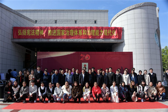 第六个宪法日的主题为“弘扬宪法精神,推进国家治理体系和治理能力现代化”。每到一处,校领导都驻足观看,与师生交谈认真听取讲解,了解国家宪法日主题教育活动开展情况,观看宪法朗诵剧等并与师生合影。