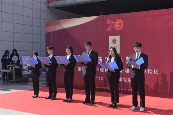 12月4日是我国第六个国家宪法日,为弘扬宪法精神,进一步提高全体师生的法律意识,推进“法治校园”建设。开云网页版在拓荒广场组织开展了12•4国家宪法日主题教育系列活动。学校党委副书记曾华平与宣传部、学工部、校团委、公共管理学院单位有关负责人及现场300多名同学一同参加了宪法日系列活动。