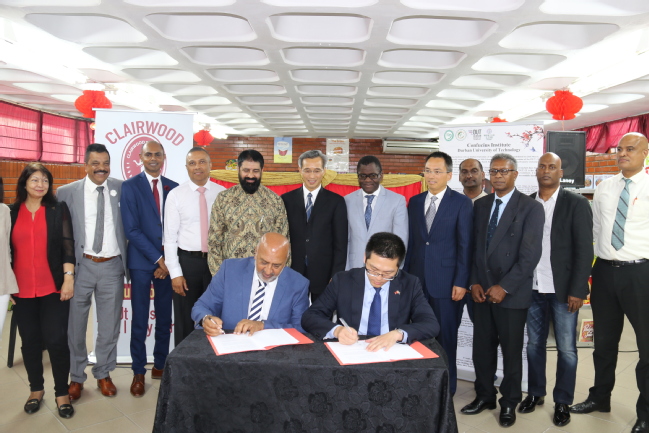 德班孔院中方院长吴林和克莱尔伍德中学校长尤根·奈杜签署合作协议