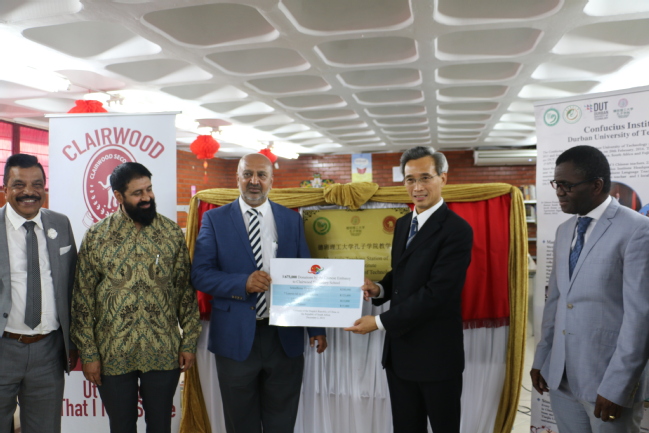 据悉,克莱尔伍德中学是德班孔院今年新成立的第2所教学点。除了大使馆捐赠的67.3万兰特物资外,德班孔院与中国驻德班总领馆也捐赠了一批汉语书籍及杂志等,用于“中国角”和汉语教学点的建设。未来,德班孔院与克莱尔伍德中学将在汉语学习、智慧教室、职业技能培训等领域开展合作。