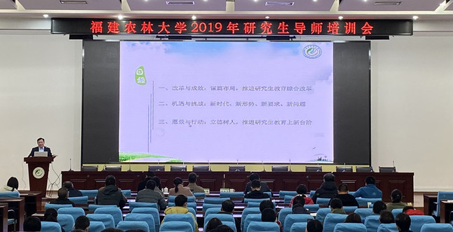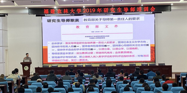 12月6日下午,我校在禧强楼学术报告厅举行2019年研究生导师培训会。会议邀请了全国农业专业学位研究生教育指导委员会委员兼秘书长、中国农业大学博士生导师李健强教授作专题报告。