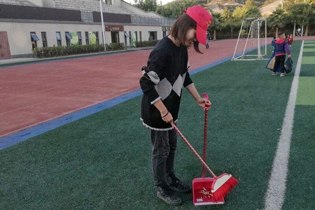 下午,志愿者在校区范围内开展了绿光保洁志愿服务活动。对操场、教学楼、图书馆及周边进行清扫。志愿者还在田径场开展爱心陪伴游园志愿服务活动,指引现场游客文明游玩。