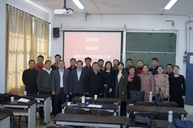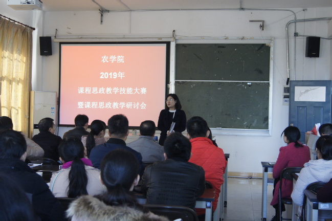近日,农学院“课程思政”教学技能大赛暨课程思政教学研讨会于学院601教室进行。比赛特邀马克思主义学院的黄秀玲老师担任评委组组长,农学院党政班子成员和全体教师参加了本次活动。