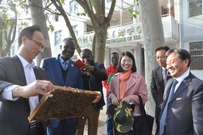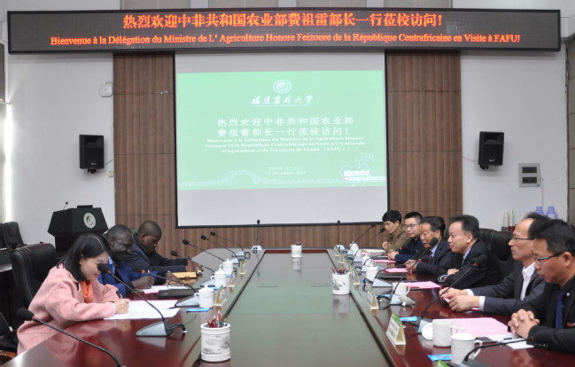 兰思仁欢迎费祖雷一行的到来,感谢前不久中非共和国总统图瓦德拉为我校专家颁授国家感谢勋章,表示将认真落实国家和省委省政府的部署要求,扎实推进有关援助项目实施,努力把项目建好建出高水平,在中非农业发展中发挥示范作用。费祖雷对学校给予的热情接待和安排表示衷心感谢,指出当前中非共和国正大力发展经济,总统先生十分希望通过与我校开展菌草、养蜂方面的务实合作,为中非共和国的农业发展、生态保护、增加收入创造新机会、注入新动力。