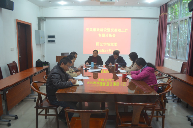 12月12日,园艺学院党委在学院会议室召开党风廉政建设暨反腐败工作专题分析会,学院全体院党委委员参加了会议,会议由学院党委书记张华英主持。