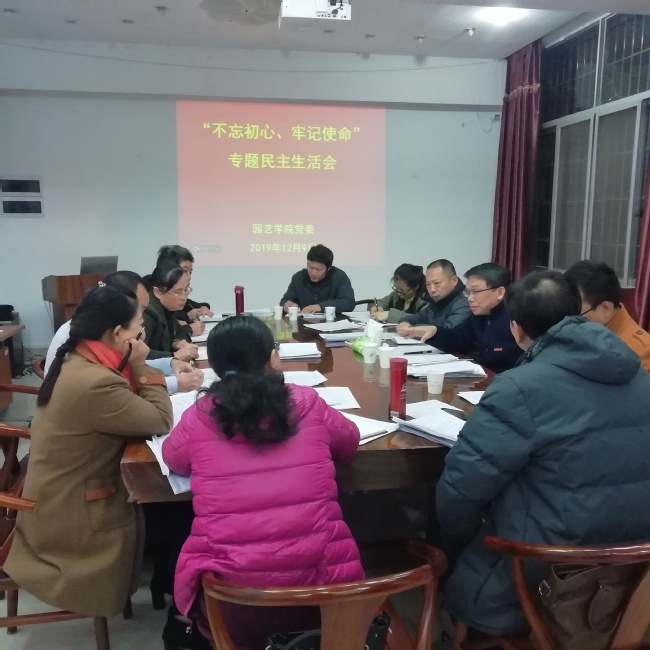 12月9日下午,园艺学院党委在园艺楼会议室召开“不忘初心、牢记使命”专题民主生活会。校党委副书记庄祥生出席会议,校第5督导组组长洪诚等全体督导组成员到会督导。会议由院党委书记张华英主持。