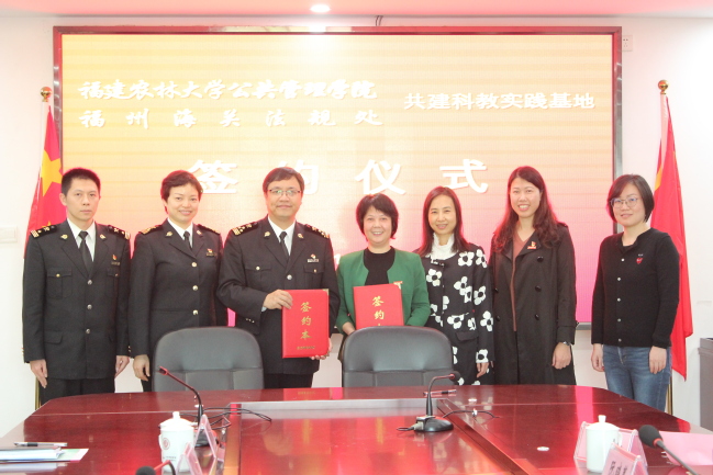 12月17日下午,福州海关法规处处长林川、科技处处长卢祥华一行6人莅临公共管理学院,双方签约共建“科教实践基地”。公共管理学院院长郑逸芳、副院长阮晓菁、法学系副主任杨晓丹等出席签约仪式。
