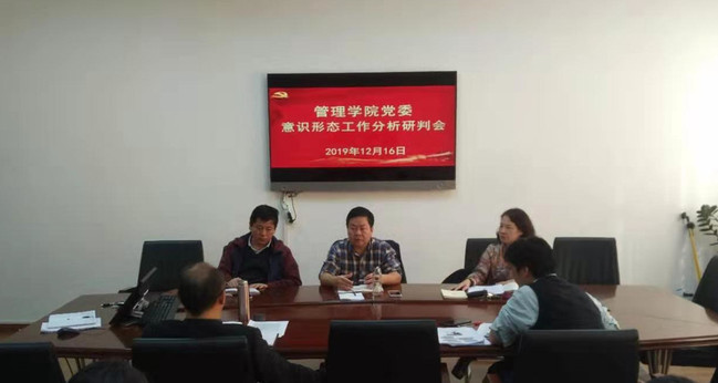 12月16日下午,管理学院党委召开意识形态工作分析研判会,学院领导班子成员参加会议,全体辅导员列席会议,会议由院党委书记谢志鸣主持。