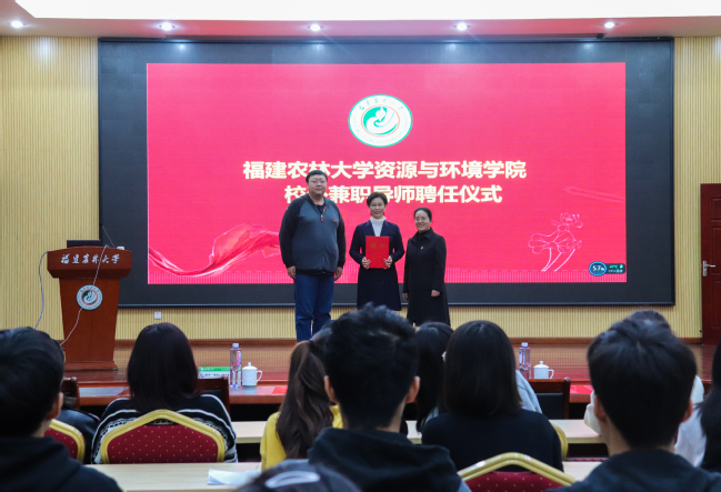 讲座开始之前,陈月霄代表学院聘任陈慧敏律师为学院校外兼职导师;并为陈慧敏律师颁发聘书、佩戴校徽。