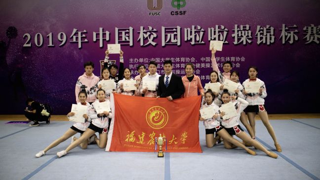 12月21日,由中国大学生体育协会主办,中国大学生体育协会健美操艺术体操分会执行的2019年中国校园啦啦操锦标赛在海南省澄迈县体育馆落下帷幕,我校啦啦操队以高难度动作和别具一格的舞蹈编排赢得评委认可,以508.5分的高分获普通院校组集体花球自选动作第一名,另获双人花球自选动作第四名。