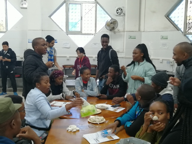 活动开始前,中国学生们向留学生、南非德班孔院冬令营学生发放了介绍冬至的宣传材料,随后在工作人员的指导下,同学们分组进行和面、裹馅、搓和、烹煮,大家亲手体验、分工协作、互帮互学,当吃上自己亲手做的汤圆时,大家幸福之情溢于言表。